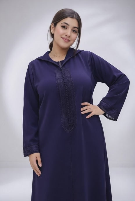 جلابة أنيقة بلون كحلي بتطريز مغربي راقي